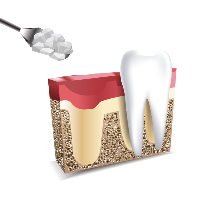 Beim Aufbau des Kieferknochens wird das eingebrachte körperähnliche Material (Calcium Phosphat) durch körpereigene Knochenzellen umgebaut. Das Knochenwachstum wird wieder angeregt und einem weiteren Abbau des Knochens wird entgegengewirkt. Ähnlich wie bei Muskeln, die lange nicht trainiert werden und die sich so zurückbilden, ist es auch beim Kieferknochen. Fehlt hier ein Zahn über längere Zeit und wird nicht ersetzt, fehlt die Belastung des Kieferknochens. Dadurch bildet er sich immer weiter zurück.