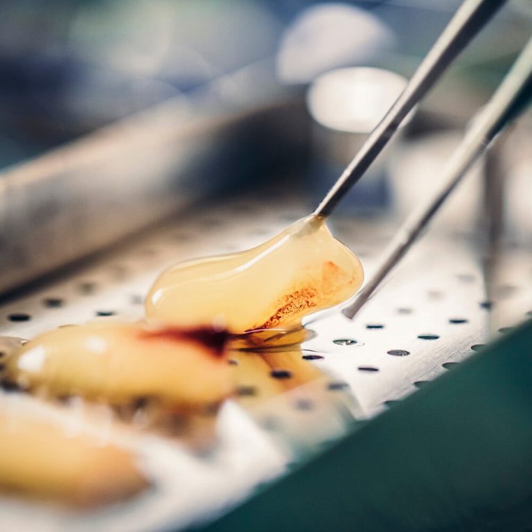 A-PRF steht für „advanced platelet rich fibrin“ – plättchenreiches Fibrin. Dieses Protein mit klebriger Konsistenz ist ein natürlicher Bestandteil des menschlichen Blutes, das dafür sorgt, dass sich Wunden schnell schließen und den Knochenaufbau oder das Wachstum von neuem Bindegewebe fördert.